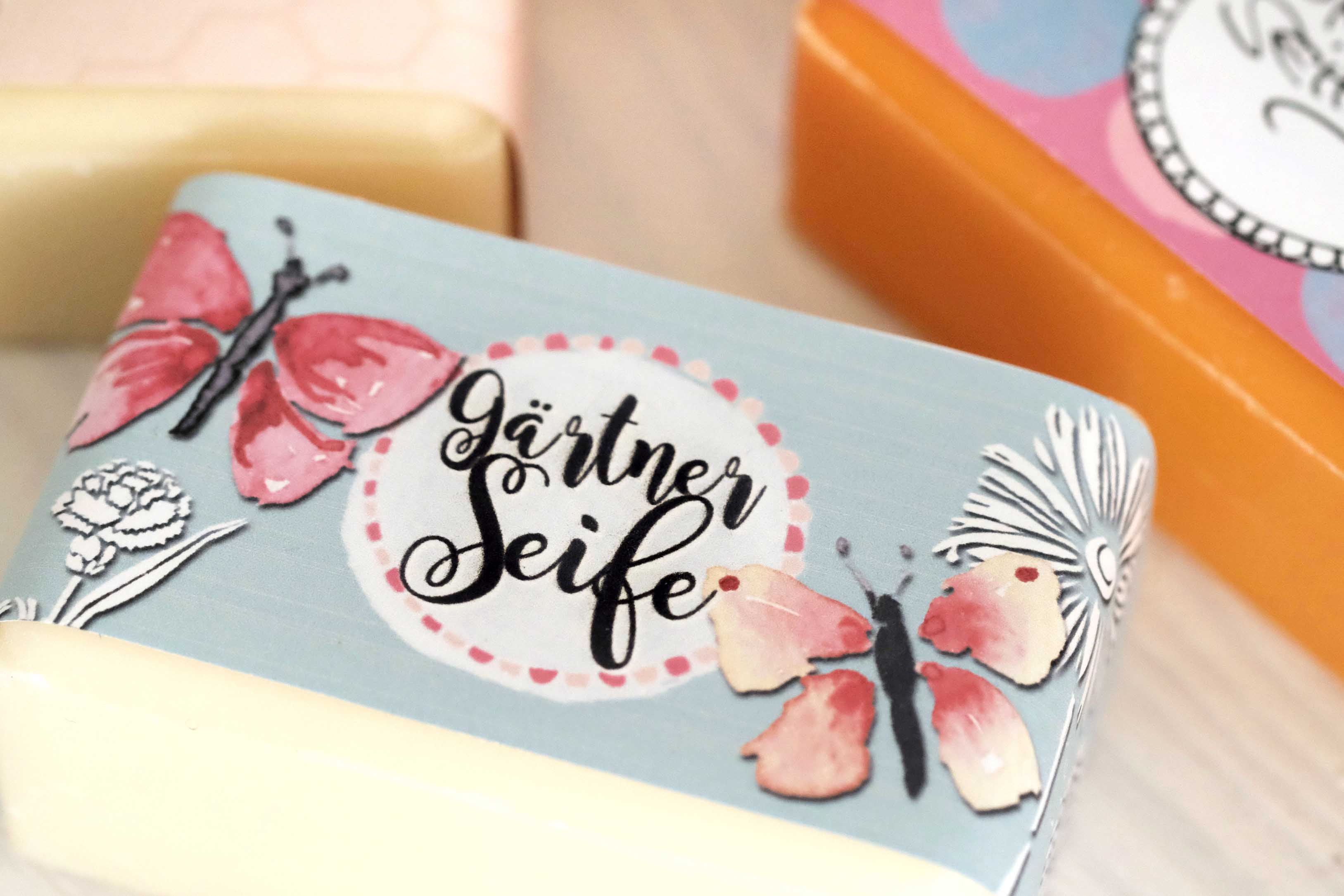 Hozzáillő szappanbanderollal a kertész szappanjához