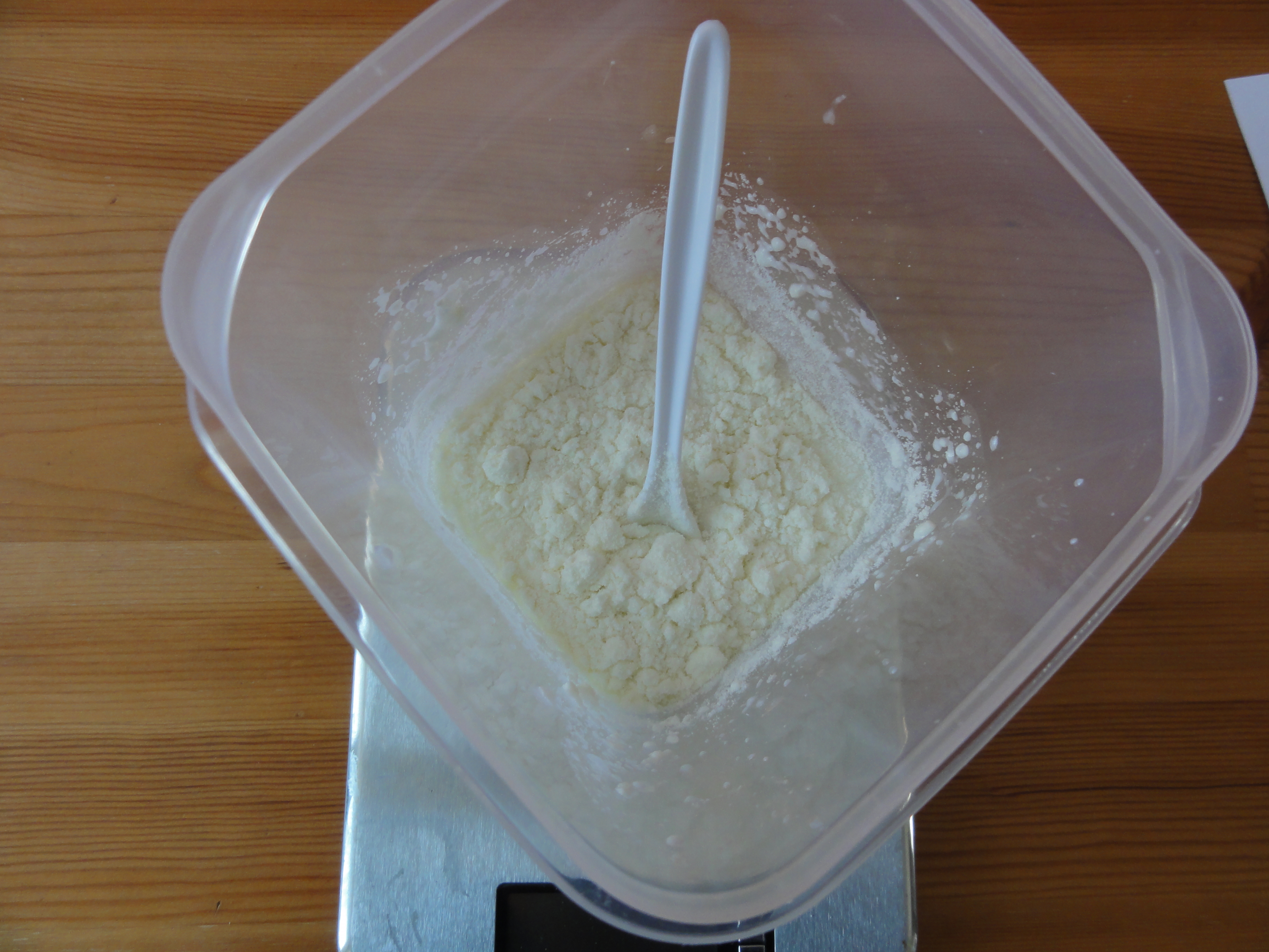 Tehát ha 300 g vízre van szükséged a lúg elkészítéséhez, és a tejport 50 g vízbe kevered, akkor most csak 250 g vizet használj a lúg elkészítéséhez.